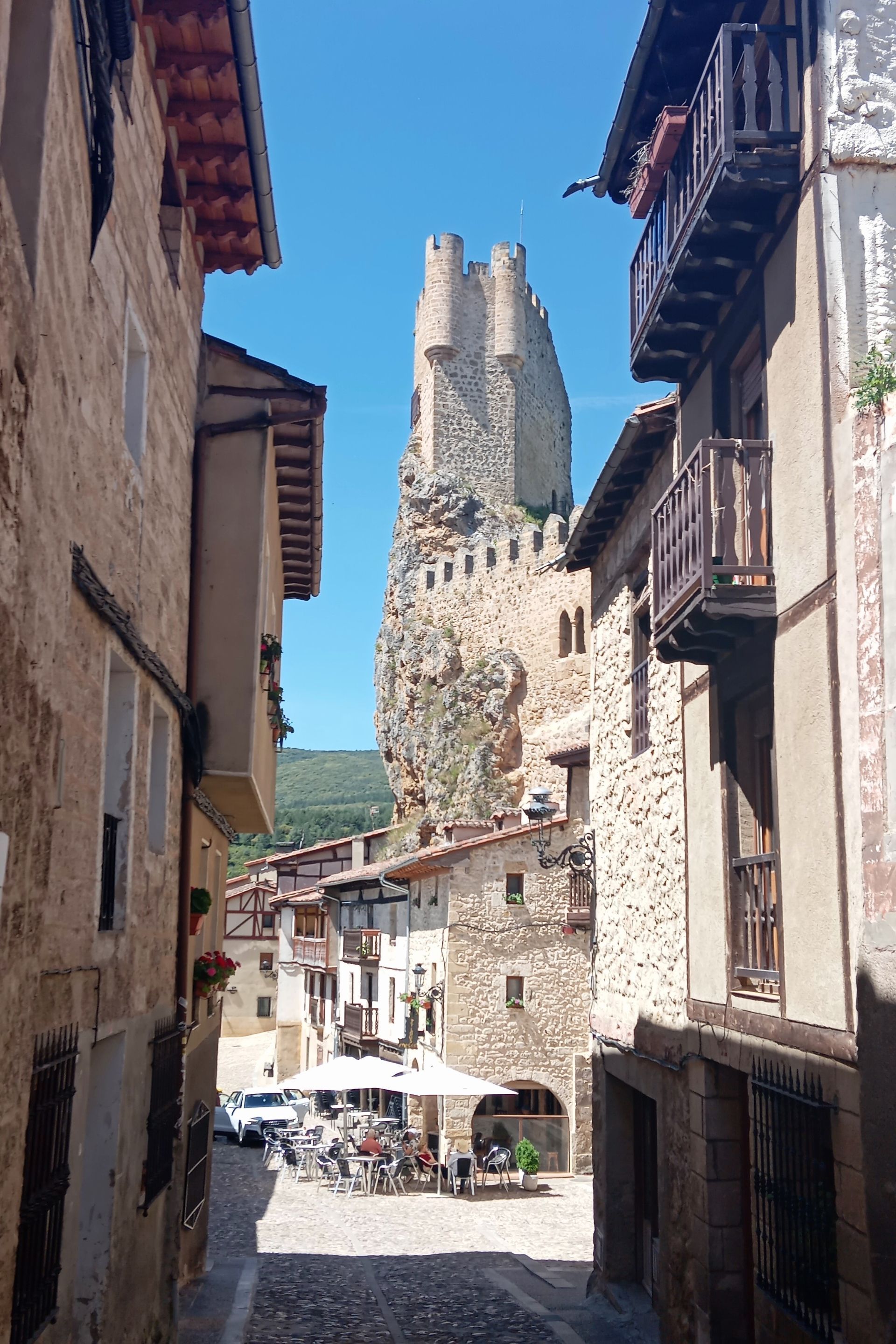 La Ciudad Medieval de Frías, que tal y como nos comentó nuestra guía, Edurne, es la ciudad más pequeña de España, ya que en 1435 el Rey Juan II de Castilla otorga el título de Ciudad. Bajo las explicaciones de la guía, recorremos sus estrechas y empinadas calles, observando las características casas realizadas con piedras de toba, que dan nombre al Valle de Tobalina. Son curiosas las casas colgadas que se establecen sobre el cortado rocoso.