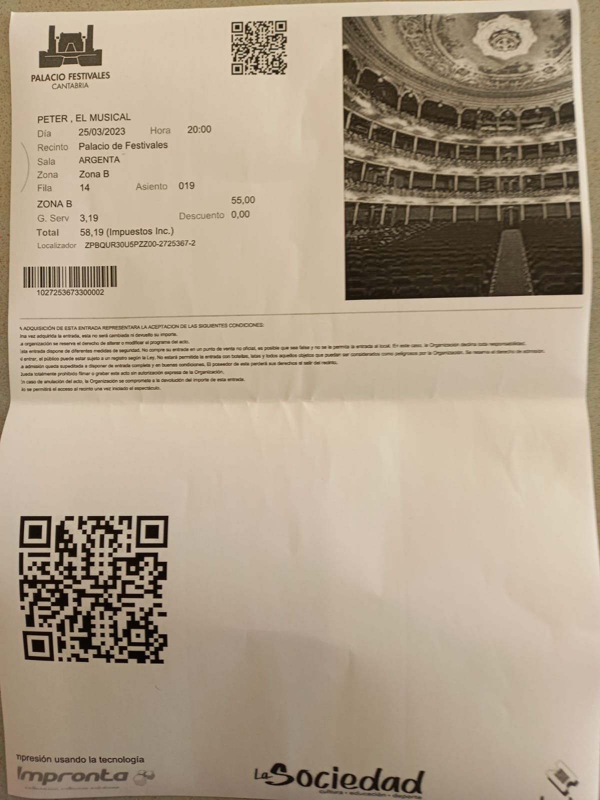Dos entradas para "PETER, EL MUSICAL" en el Palacio de Festivales.