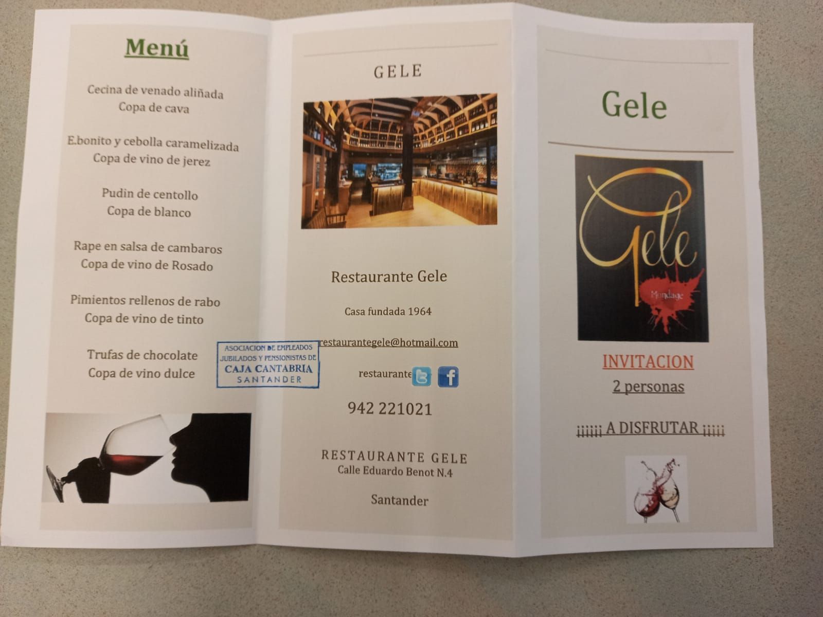 En esta ocasión sorteamos una invitación para dos personas en el RESTAURANTE GELE (MENU ESPECIAL)