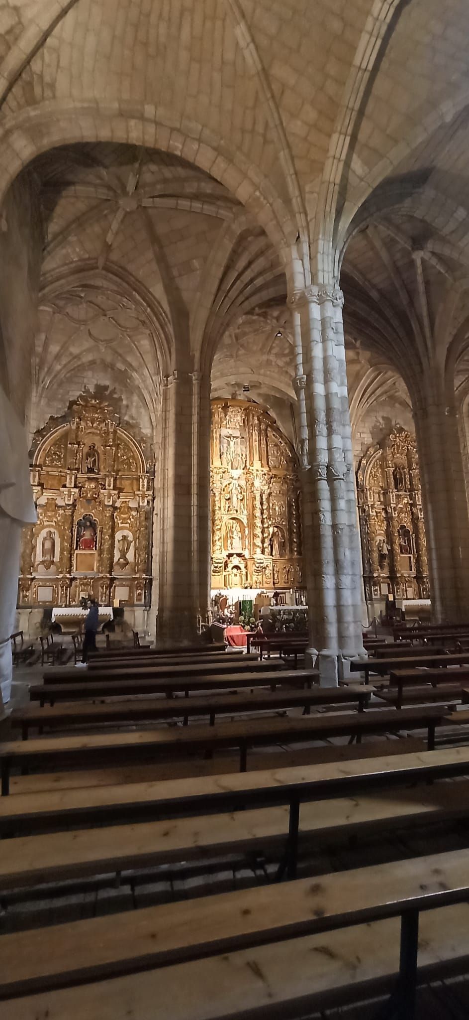 Ya por la tarde, teníamos reservada una visita guiada por San Vicente, pero las inclemencias del tiempo nos obligaron a resguardarnos en la preciosa iglesia de Santa María de Los Angeles, que corona el promontorio central de la localidad. Se trata de una iglesia gótica de grandes dimensiones, con tres naves bastante amplias, siendo la central más ancha y un poco más alta que las laterales. Según documentos conservados, el rey Alfonso VIII pidió a su secretario Miguel, en el año 1210, que cuidara de la edificación y mantenimiento de la nueva iglesia de San Vicente de la Barquera. El grueso principal de la iglesia quedó finalizado en el siglo XIV. Debido a obras de restauración no pudimos contemplar el sepulcro renacentista del inquisidor Antonio del Corro, realizado en mármol, similar al sepulcro de “El Doncel” de Sigüenza.